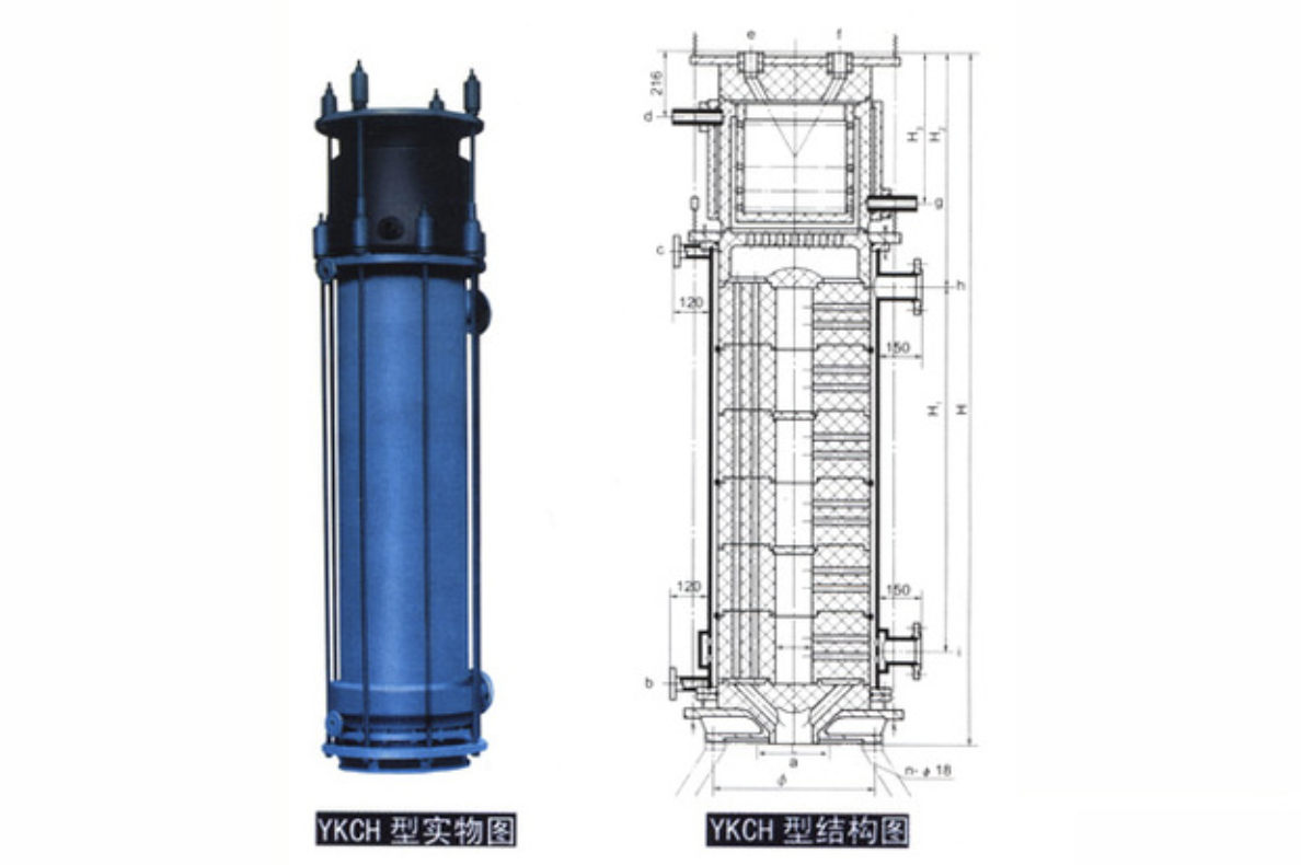 YKCH型圓塊孔式石墨硫酸稀釋冷卻器由石墨制混酸器與圓塊孔式石墨冷 卻器組合而成,亦可用作其它物料放熱性 稀釋、混合、冷卻。本公司亦生產LS型石墨硫酸稀釋冷卻器及混酸與冷卻分體之I型、II型組合硫酸稀釋冷卻系統。圖示為冷卻器結構圖。技術特性: 縱向 橫向設計壓力Mpa ≤0.1 ≤0.4設計溫度℃ -20 ~ 165 (按中徑計)換熱面積㎡ HG/T3188-2000技術標準:HG